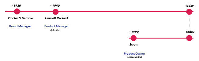 اصطلاح مدیر محصول اولین بار توسط بیل هیولت و دیو پاکارد در شرکت هیولت-پاکارد معرفی شد. در آن زمان، مدیر محصول مسئول مدیریت یک محصول از مجموعه محصولات شرکت بود و به عنوان پل ارتباطی بین مشتریان و تیم‌های مهندسی عمل می‌کرد.